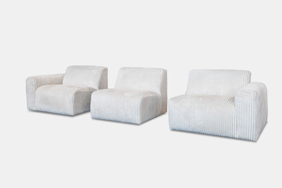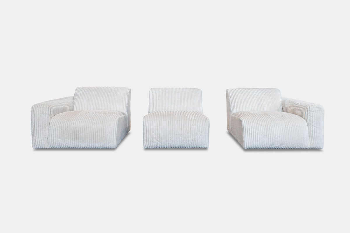 | 90 (1A) + 90 (NA) + 90 (1A) - 320w * 100d * 83h 70 (1A) + 70 (NA) + 70 (1A) - 260w * 100d * 83h Ottoman - 93w * 93d * 45h ------- Modular sizes available to build your own |